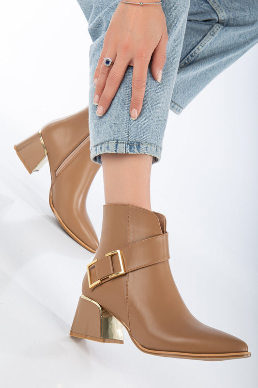Tokalı Kadin Topuklu Bot - Kahve