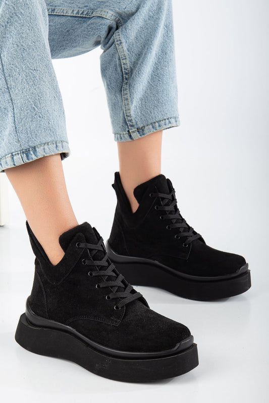 Dana Süet Şık Günlük Yeni Moda Kadın Bot - Siyah