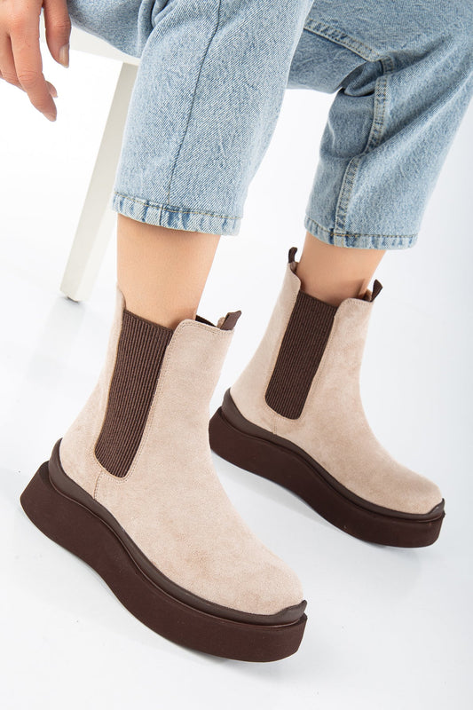 Dana Süet Şık Günlük Yeni Moda Kadın Bot - Bej