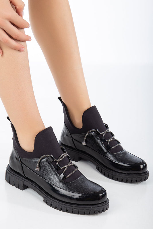 Oxford Bağlı Kadın Ayakkabı Rugan - Siyah