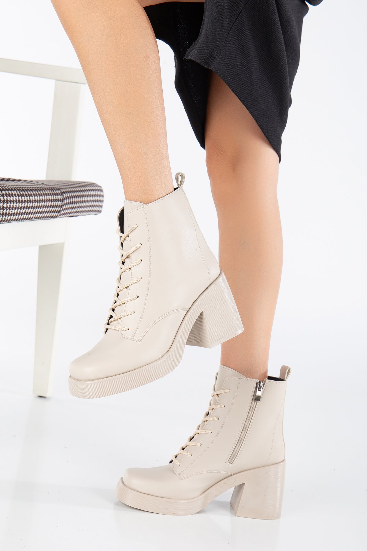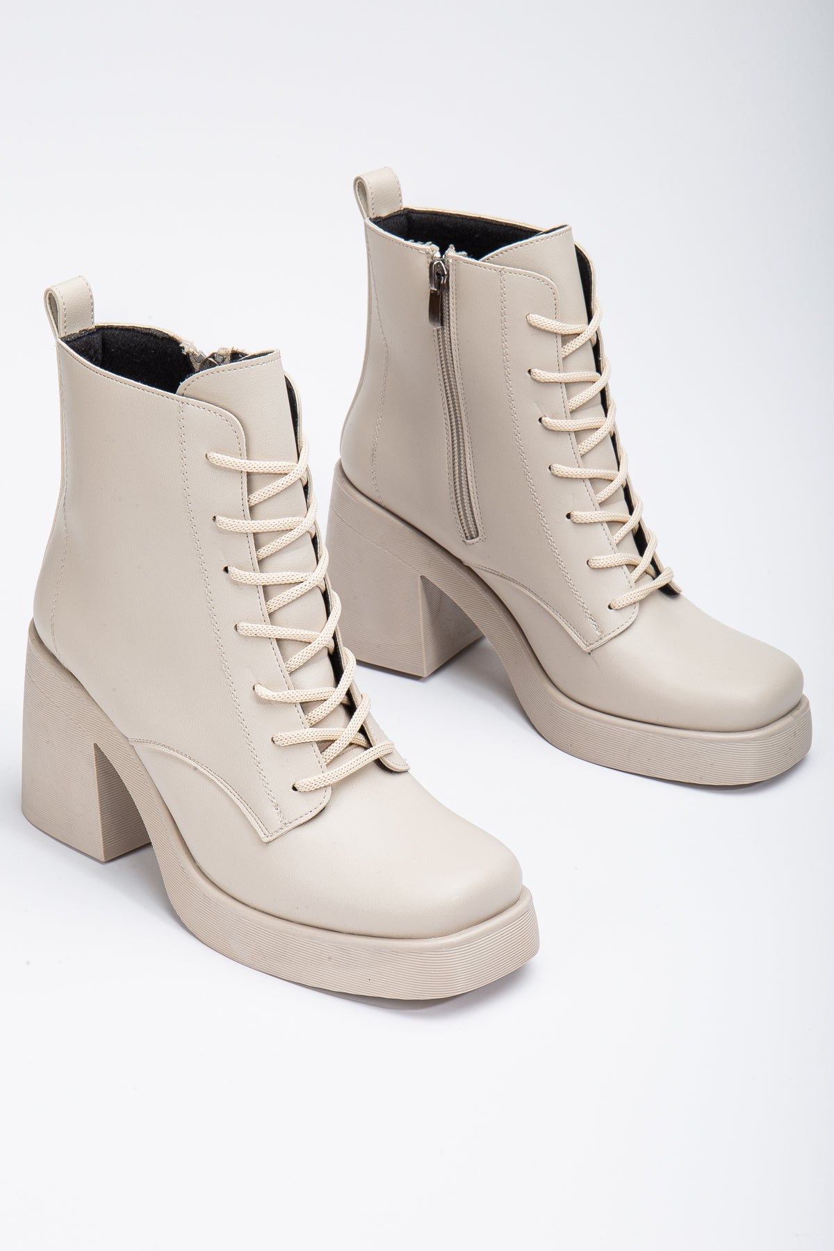 Bağcık Detaylı Platform Topuklu Bot - Nude