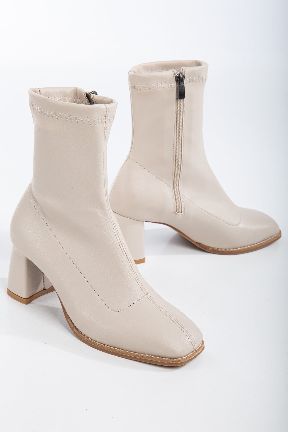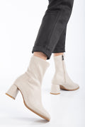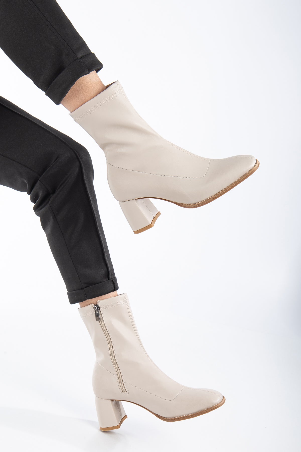 Cilt Kalın Topuklu Fermuarlı Çorap Kısa Kadın Streç Bot - Nude