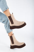 Dana Süet Şık Günlük Yeni Moda Kadın Bot - Bej