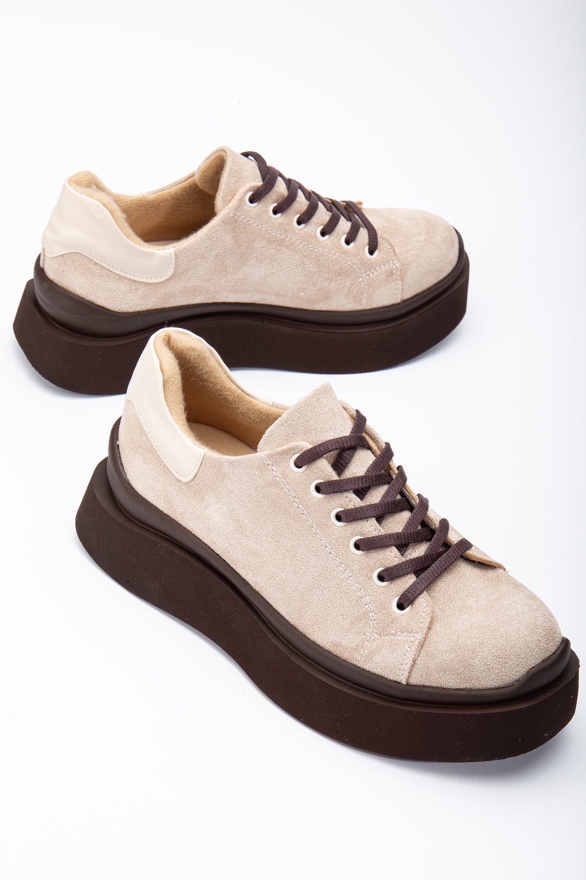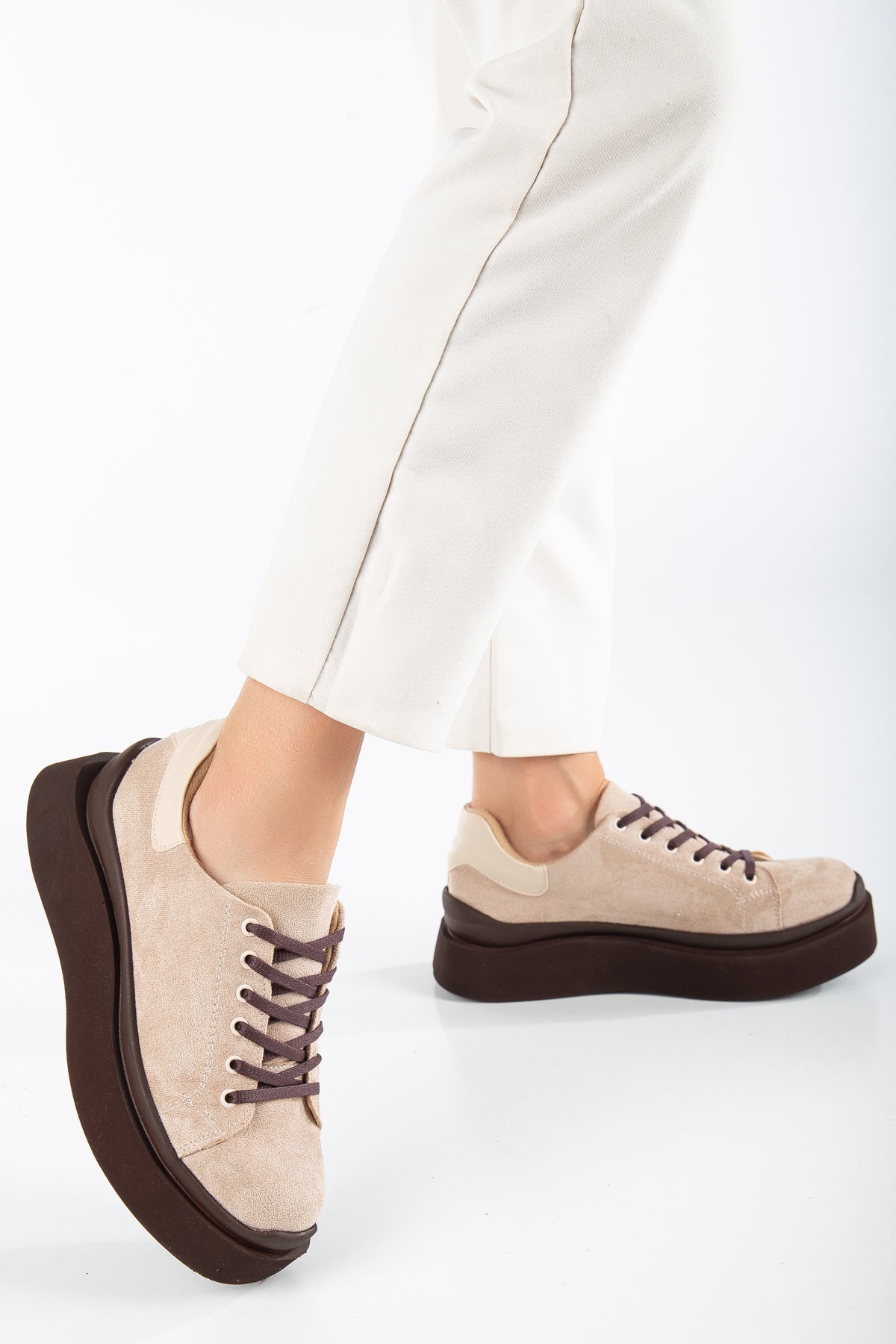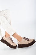 Kadın Günlük Ayakkabı Biye Detaylı - Süet Bej
