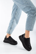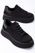 Kadın Günlük Ayakkabı Biye Detaylı - Süet Siyah