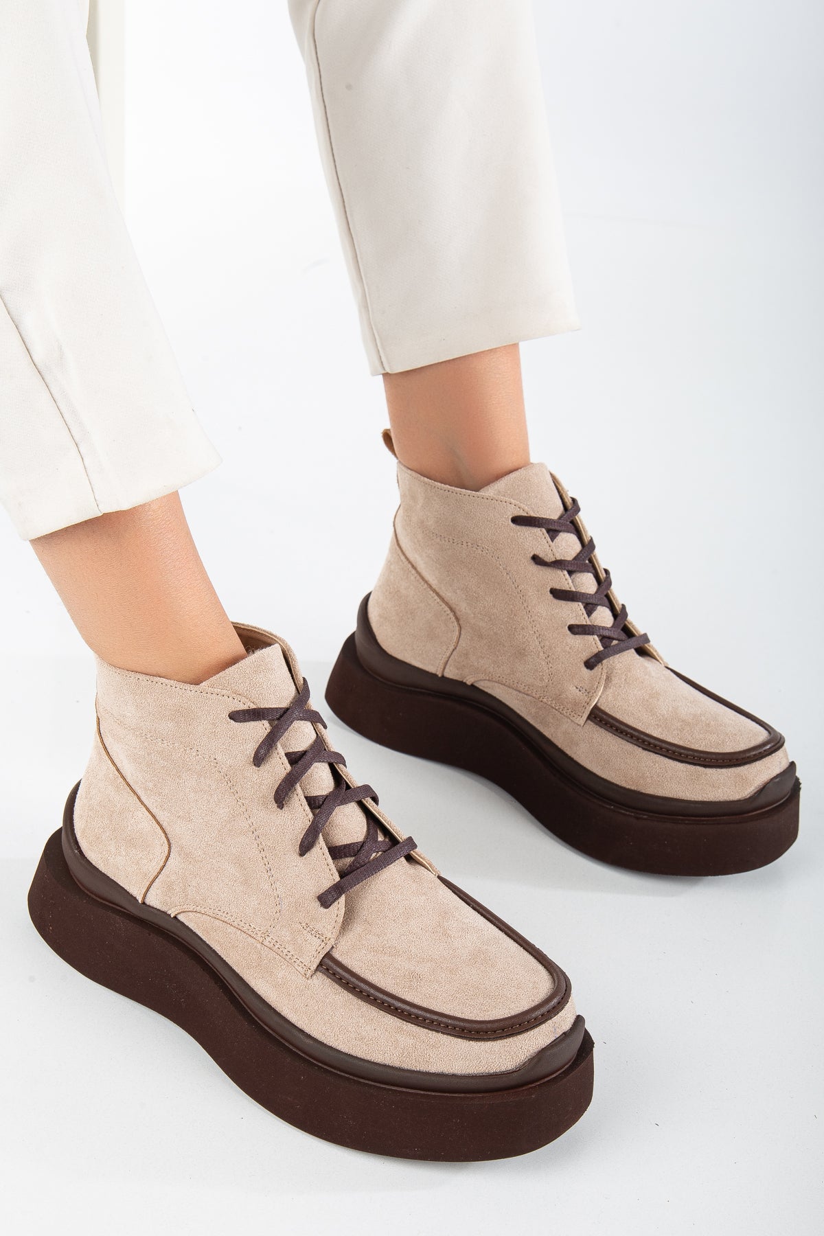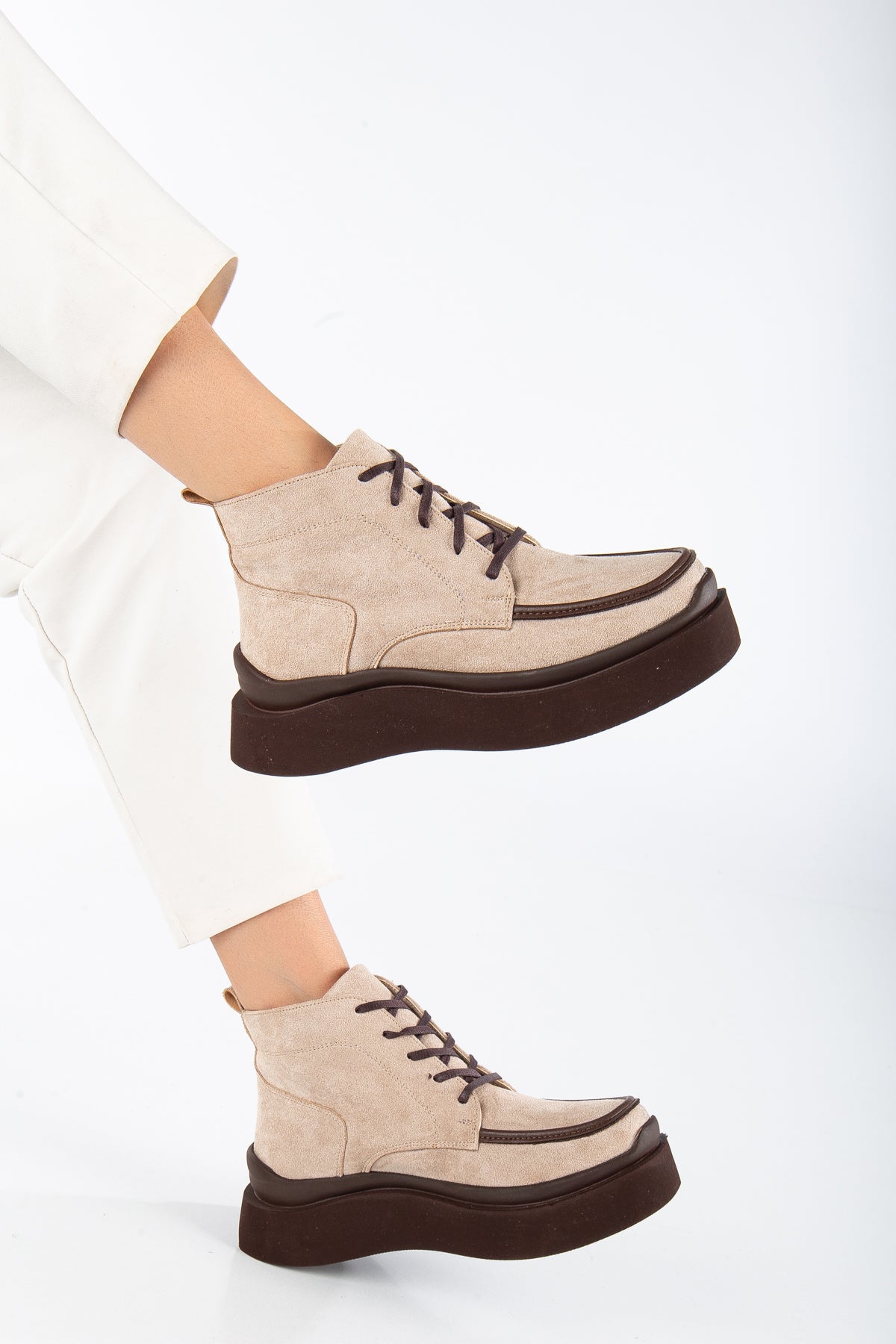Kadın Günlük Bot Şerit Detaylı - Süet Bej
