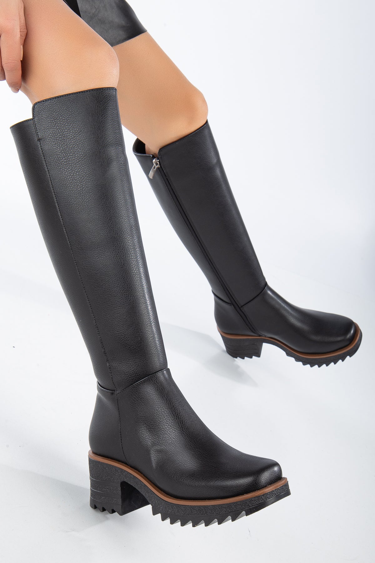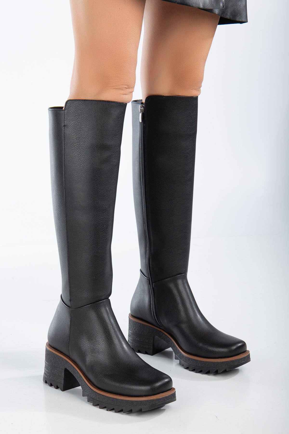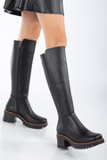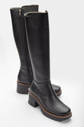 Kalın Taban Topuklu Fermuarlı Kadın Çizme - Siyah
