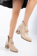 - Malzeme: A kalite suni deri, TPU taban, Taşlı topuk, Tay tüyü iç astar
