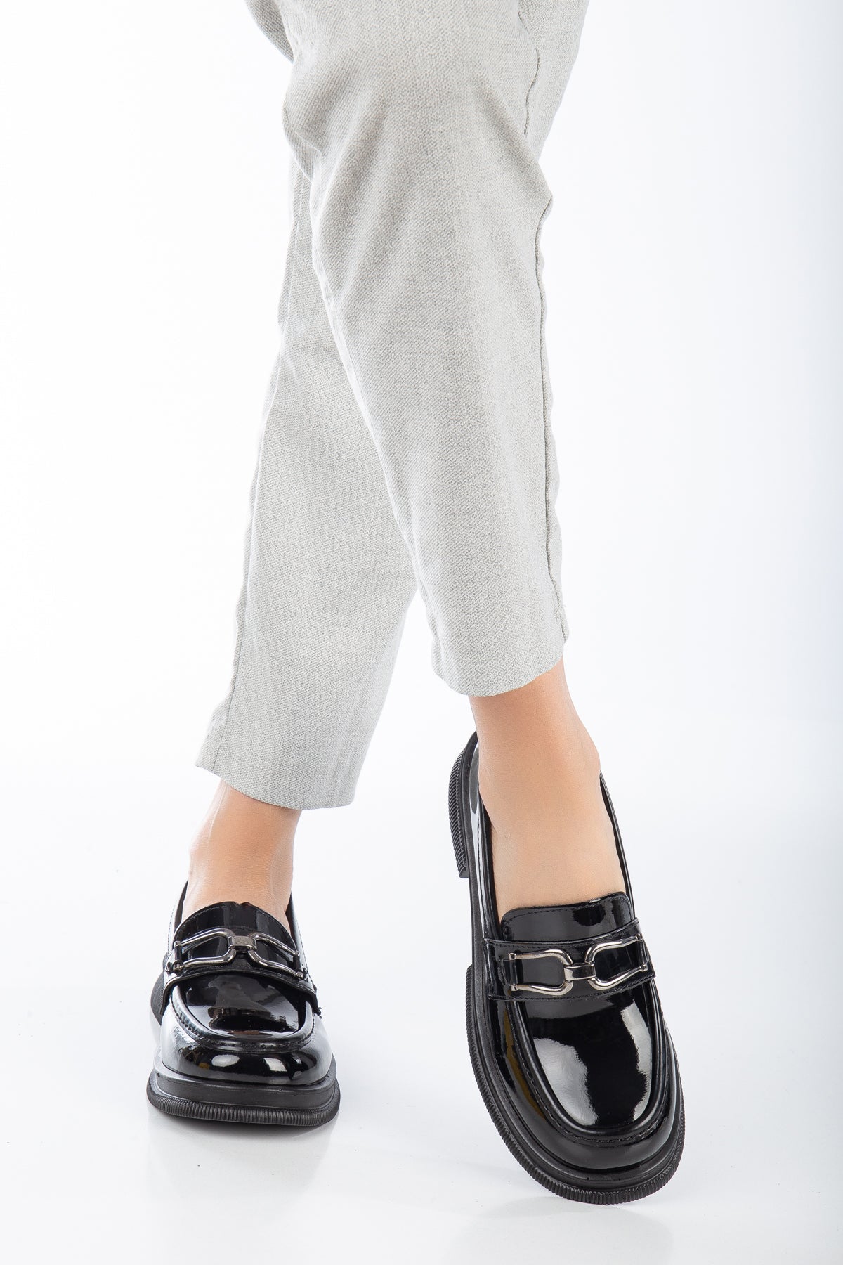 Rugan Nal Tokalı Eva Taban Loafer - Siyah