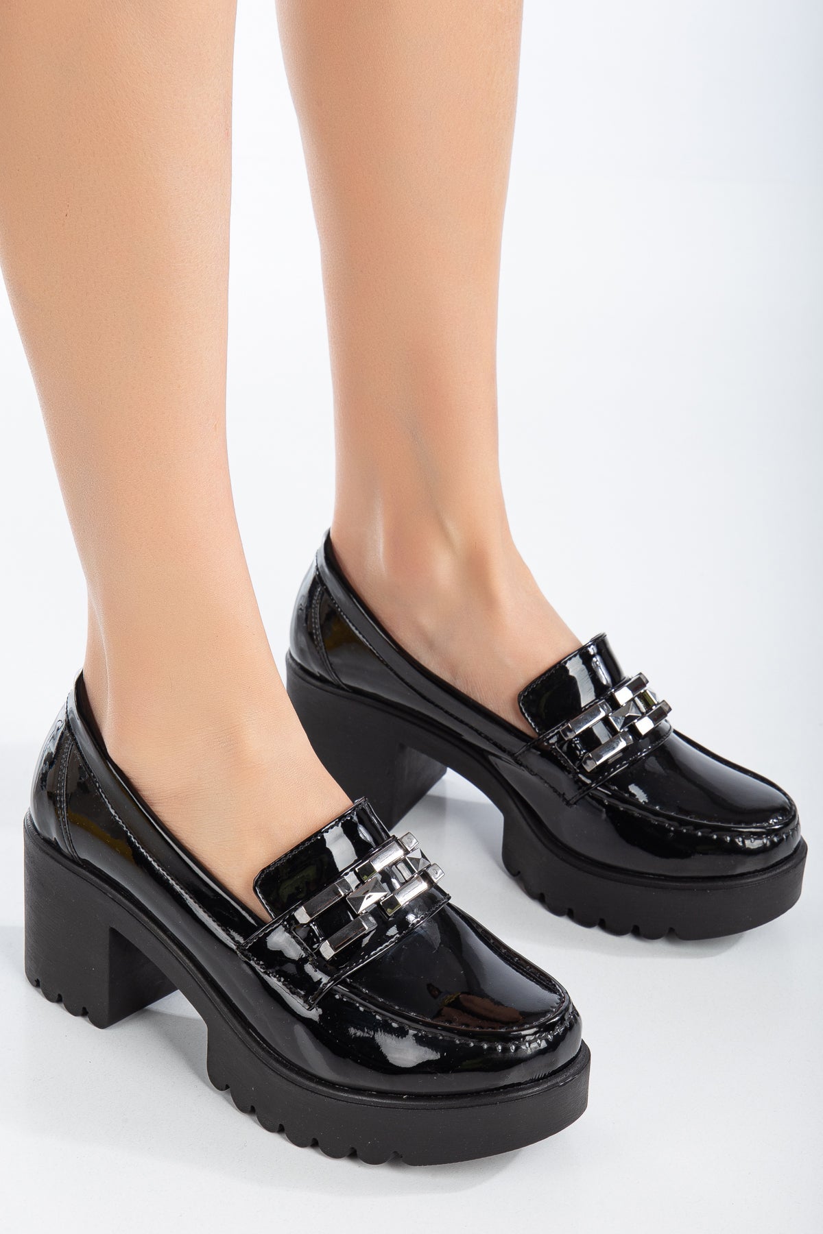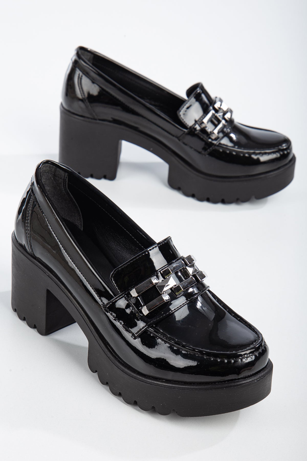 Tokalı Yüksek Taban Loafer Ayakkabı Rugan - Siyah