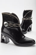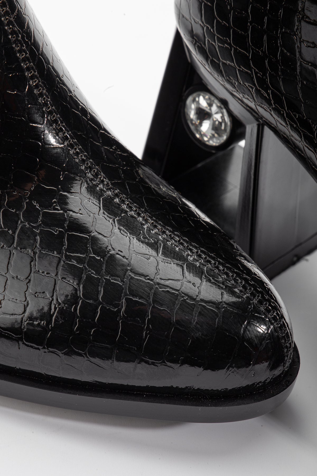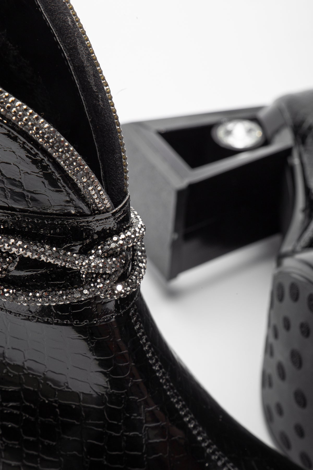Topuk Detaylı Taş Tokalı Kroko Kadın Bot - Siyah