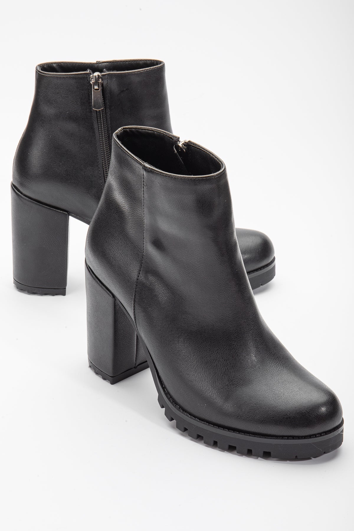 Trak Tabanlı Yuvarlak Burunlu Topuklu Kadın Bot - Siyah