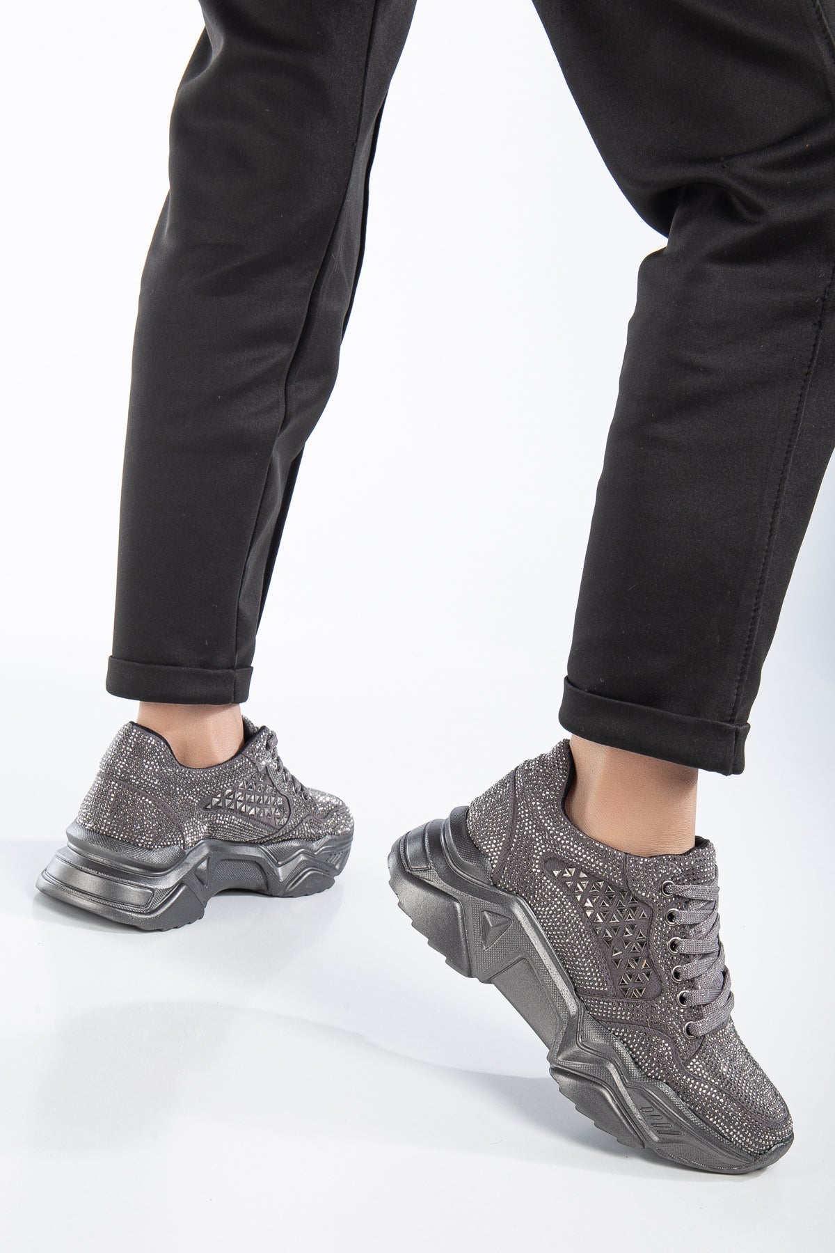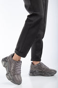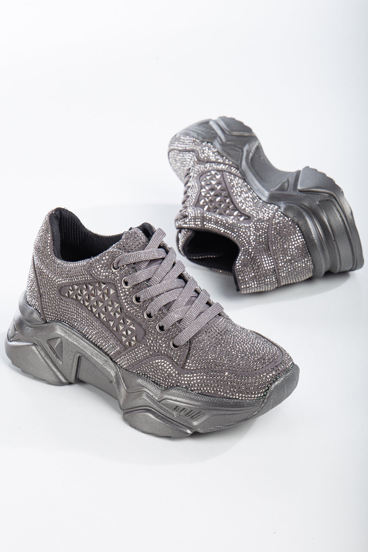 Yüksek Taban Taşlı Kadın Sneaker - Platin